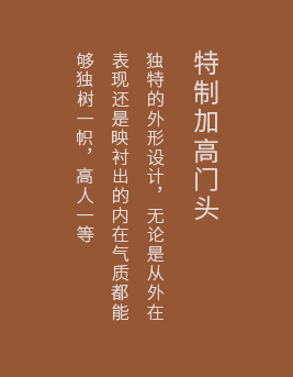 | 秉承中國“藏風聚!钡膫鹘y理念,研發出特殊的設計工藝,無需更改門洞尺寸,加高門框處理,添財納吉祥、五福入豪門 |